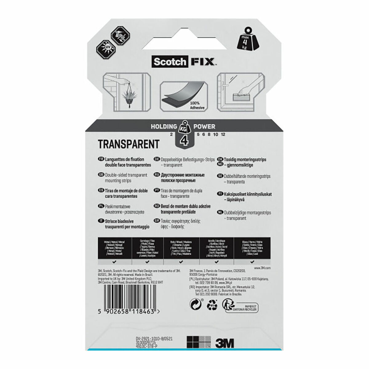 Scotch 7100263586. Tipo de producto: Cinta de montaje, Color del producto: Transparente, Uso adecuado: Interior. Ancho: 25 mm, Profundidad: 76 mm. Tipo de embalaje: Envase para colgar