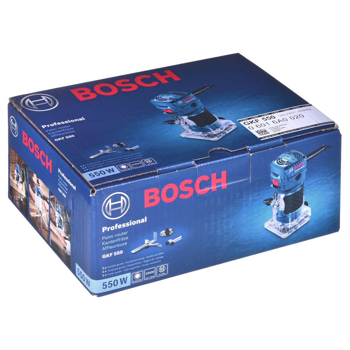 Bosch GKF 550. Color del producto: Negro, Azul, Rojo, Blanco. Velocidad de giro al ralentí (máx.): 33000 RPM. Fuente de energía: Corriente alterna, Entrada de energía: 530 W. Ancho: 90 mm, Profundidad: 90 mm, Altura: 188 mm