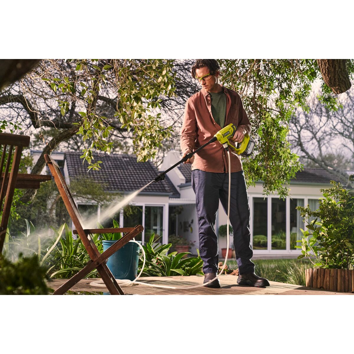 Ryobi RY18PW22A-0. Factor de forma: Compacto, Fuente de energía: Batería, Color del producto: Negro, Verde. Caudal máximo: 182 l/h, Presión de trabajo (máx.): 22 bar, Nivel de potencia sonora: 86,5 dB. Capacidad de la batería: 5 Ah. Peso: 2 kg