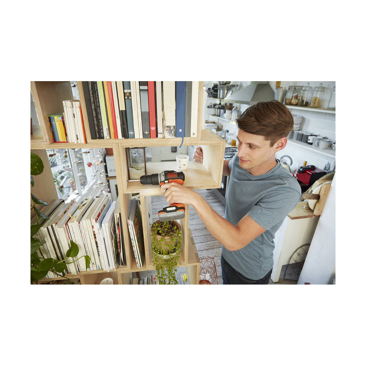 El Taladro Percutor 12V con batería USB 1.5Ah es compacto y fácil de manejar. Con potencia y velocidad suficiente para realizar tareas de perforación en materiales tales como madera, metal y manpostería. Las 11 posiciones de par proporcionan el rendimiento necesario para una perforación y atornillado de gran precisión. Gracias a su batería 12V con entrada USB podrás cargar todos tus dispositivos móviles. Características + Beneficios - Potencia y velocidad suficiente para tareas de atornillado así como perforación en madera, metal y plástico. - Acción percutora para perforar en mampostería y hormigón. - Motor con 2 velocidades: alta velocidad para perforación en mampostería y baja velocidad para perforación controlada en madera, plástico y metal asi como en las tareas de atornillado. - 11 posiciones de par de apriete para mayor control y precisión en tareas de atornillado. - Luz LED para mayor visibilidad en el área de trabajo - Su batería de litio mantiene más del 80% de su energía después de 90 días de inactividad. - Velocidad variable para máxima precisión en aplicaciones de perforación y atornillado. - Diseño compacto y ergonómico con empuñadura antideslizante para mayor agarre y reducción de la fatiga. - Batería con entrada USB y salida micro-USB para cargar dispositivos móviles. - Forma parte del sistema 12V de BLACK+DECKER. La batería compatible con el resto de herramientas 12V.