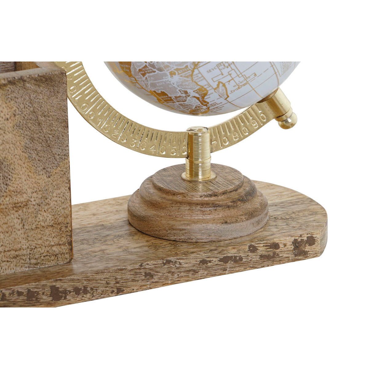 Globo Terraqueo Home ESPRIT Blanco Marrón PVC Madera de mango 24 x 8 x 19 cm