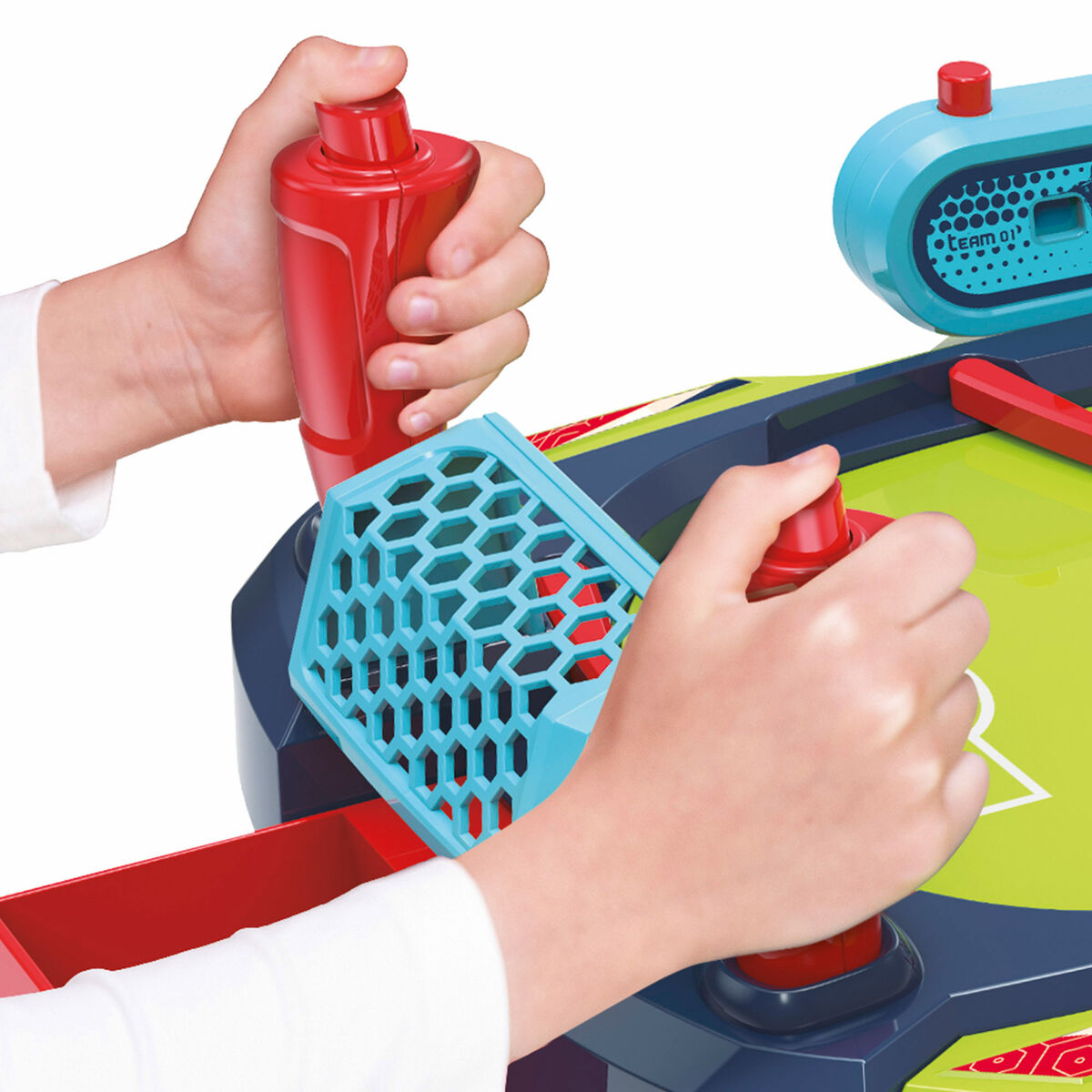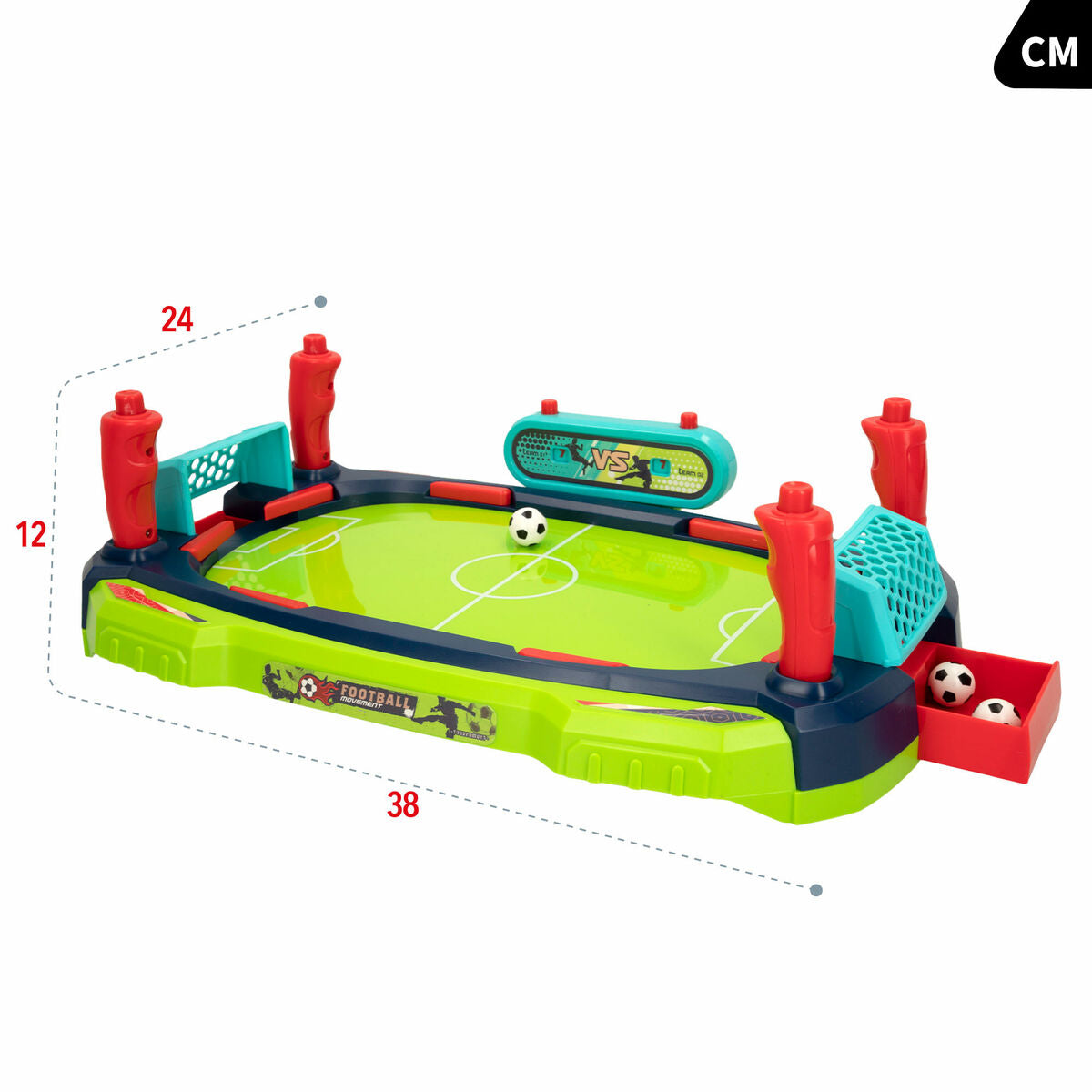 ¡Pon a prueba tu habilidad manual con este futbolín pinball CB Games! Incluye todo lo que necesitas para pasar una tarde divertida de juegos en familia o con amigos: un estadio, cuatro joysticks, un marcador y balones. El juego mide 45,5 cm de ancho, 24,5 cm de largo y 12 cm de alto, un tamaño ideal que permite jugar en cualquier rincón de la casa. Además, al tener que pulsar los joysticks para golpear el balón e intentar meter gol, es perfecto para entrenar la coordinación ojo-mano y habilidad manual. ¿Cuántos goles serás capaz de meter?