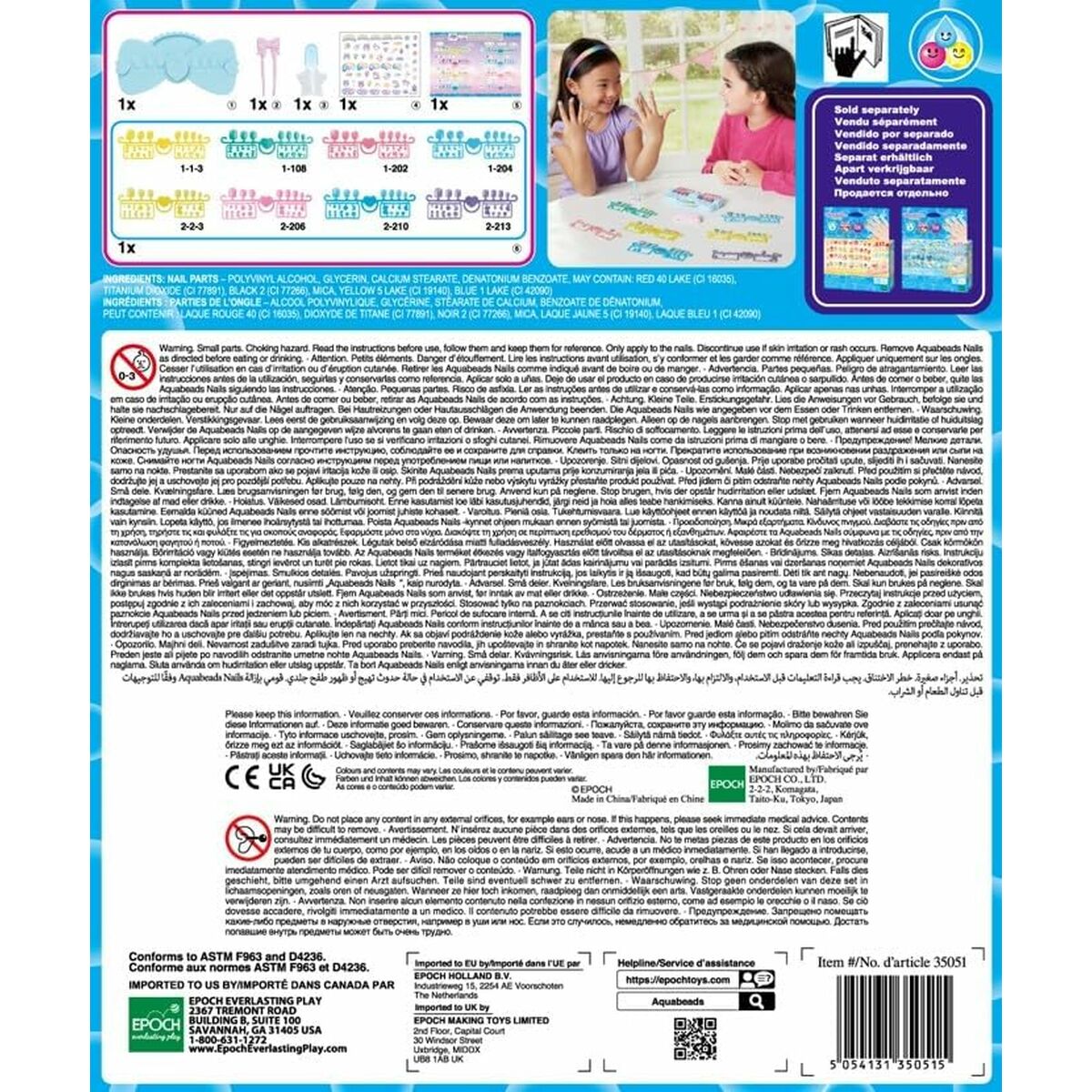 Aquabeads 35051. Tipo de producto: Kit de manualidades para niños, Edad recomendada (mín.): 4 año(s), Color del producto: Multicolor. Tipo de embalaje: Caja cerrada