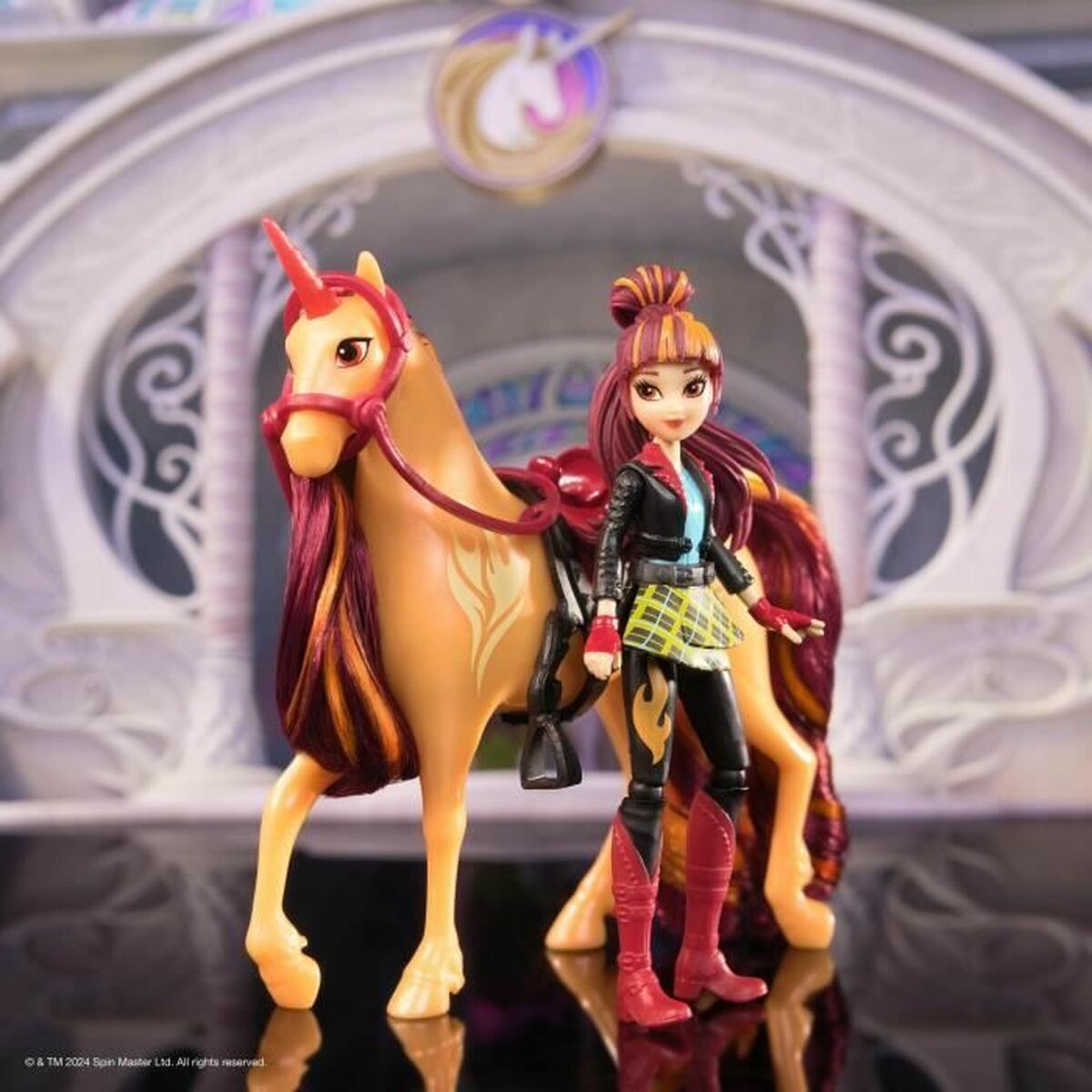Celebra el vínculo entre jinete y unicornio con el set Valentina & Cinder de Academia Unicornio. Inspirado en la serie de animación de NETFLIX y los libros superventas que rinden tributo a la amistad, este set estimulará la recreación de un sinfín de imaginativas historias. La muñeca de Valentina de 11,5 cm tiene detalles realistas como los de la serie y 7 puntos de articulación para que puedas colocarla en posturas dinámicas. Chispa mide 13 cm y complementa el look de Valentina con marcas de magia de fuego y crines y cola de color rojo y naranja que podrás peinar (cepillo incluido). Sienta a Valentina a lomos de Chispa y cabalga hacia la aventura. Gracias a la brida y los accesorios de montura extraíbles, Valentina puede mantenerse sin problemas sobre Chispa. Si quieres descubrir más formas de experimentar Academia Unicornio con tus personajes favoritos, hazte con el resto de muñecas, incluidas Sophia, Ava, Layla e Isabel con sus unicornios (los sets se venden por separado), y amplía tu universo. Para niñas a las que les gustan los juguetes de unicornios y caballos, las muñecas y los accesorios, las casas de muñecas, los juguetes coleccionables o los peluches, entre otros. Los juguetes de Academia Unicornio son un divertido regalo para cumpleaños o cualquier otra ocasión. Vive adorables aventuras de Academia Unicornio con el set Valentina & Cinder.