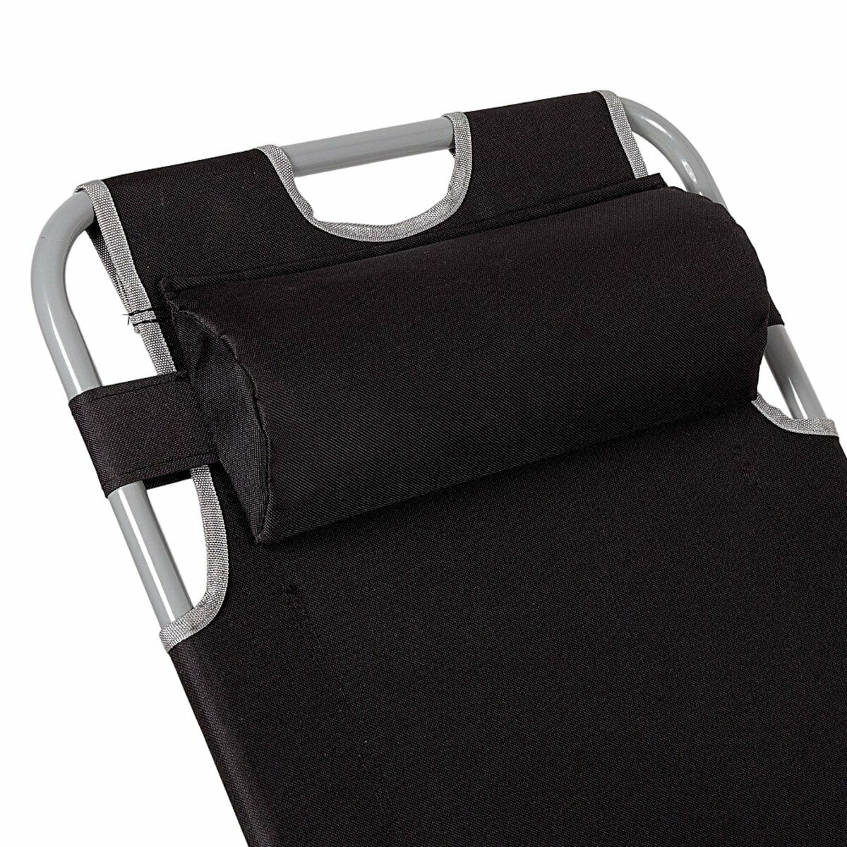 - Tumbona plegable jardín color negro con cojín acolchado extraíble y asas de transporte Aktive Garden