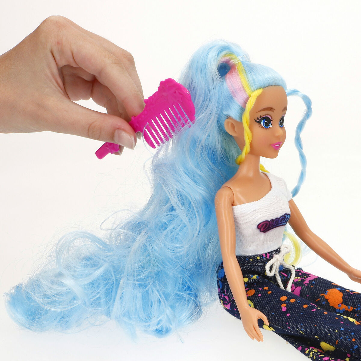 ¡Crea looks únicos y deja volar tu imaginación con la muñeca Glam Up Dreameez! Con su larga melena azul y su conjunto moderno, esta muñeca de 30 cm viene acompañada de más de 20 sorpresas para personalizar su estilo. Incluye pegatinas faciales, accesorios de moda y elementos para cambiar su look de día a noche, además de maquillaje para un toque especial. Perfecta para peinar, vestir y decorar, convirtiendo cada juego en una experiencia creativa y divertida. Recomendada para niños y niñas a partir de 3 años.