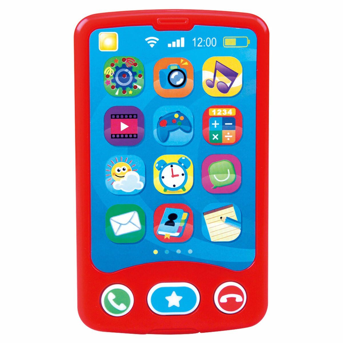 - El juguete emite sonidos de llamada y otros efectos sonoros tiene tiene iconos atractivos para el bebé y un botón de silencio en la parte lateral